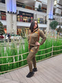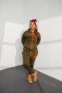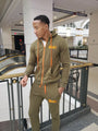 This Olive Green Jogging Suit with orange zippers and drawstrings is the perfect comfortable compliment to any occasion or day. Its perfect for fall or winter weather and is super comfortable. Fits true to size.