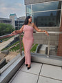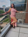 This pink bodycon one shoulder sleeveless maxi dress is a wardrobe MUST HAVE!! Its a casual fit, thigh-high cut, soft, flattering, curve hugging and comfortably made of 91% polyester